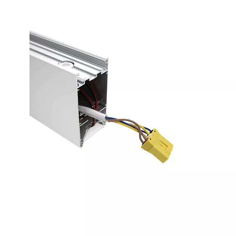 Cette ligne lumineuse LED de 150cm de long est composée d'un profilé aluminium peint en blanc, de la source LED et d'un transformateur intégré.